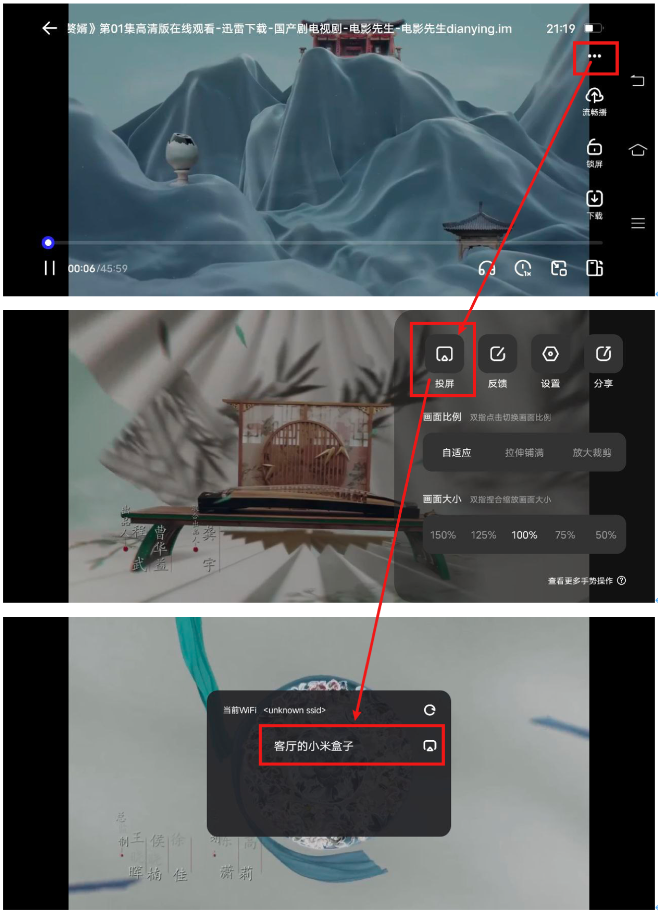打开安卓UC浏览器->打开风车动漫-专注动漫的门户网站->开始播放->全屏->左下角投屏->等待搜寻到智能电视/电视盒子->选中,即可投屏。