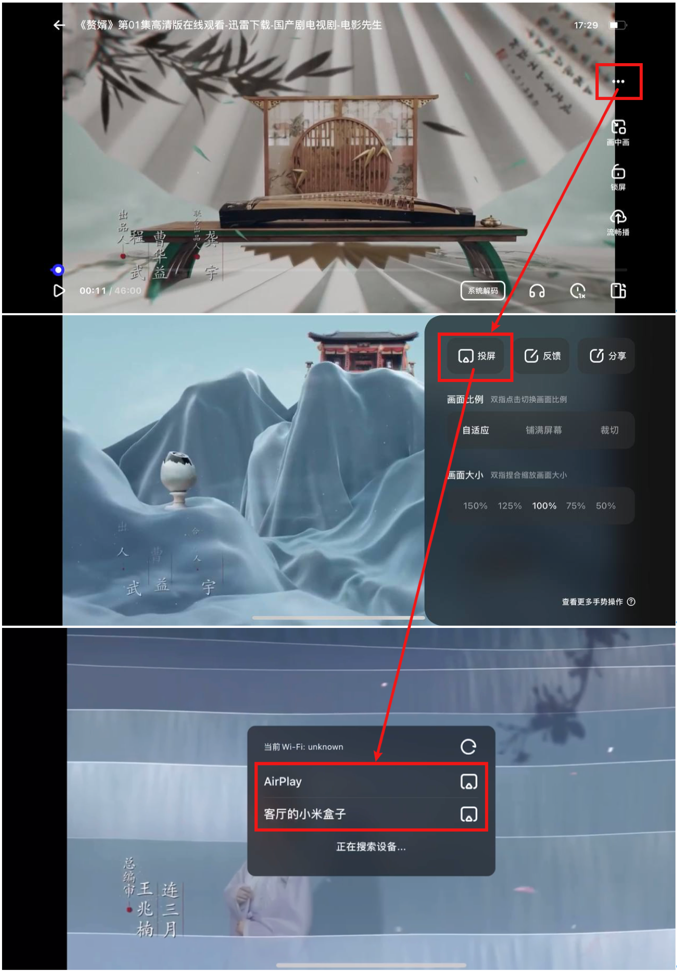 打开夸克浏览器->打开风车动漫-专注动漫的门户网站->播放视频->选择·····右上角 … ->投屏->等待搜寻出智能电视/电视盒子->选中,即可投屏。