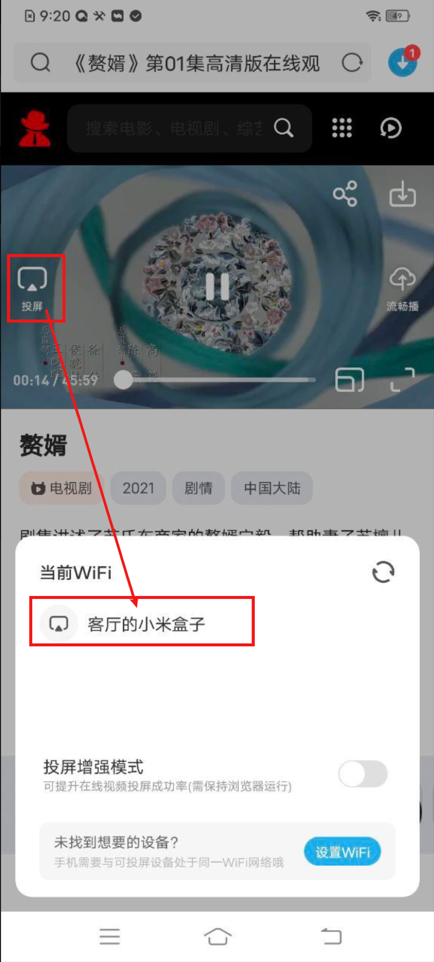 需要让当前手机和电视/盒子连接同一WIFI网络,否则可能无法搜到电视设备。